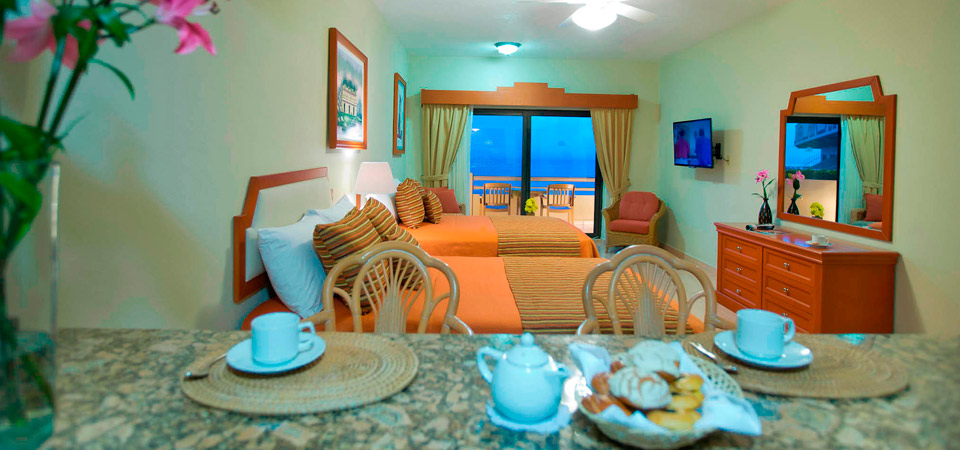 Dos camas matrimoniales o una cama queen size con un sofá cama queen size. Baño completo con tina de mármol. Balcón con vistas a los jardines o la marina. A corta distancia de albercas / playa / restaurantes.